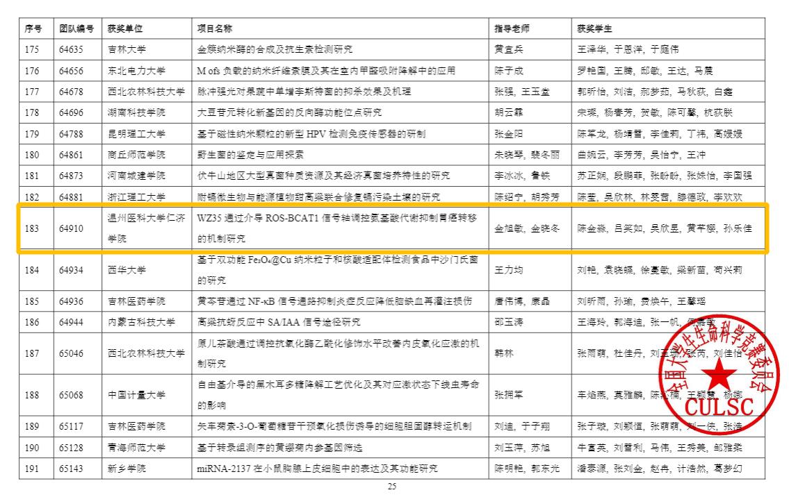 据悉,全国大学生生命科学竞赛(CUSLC)是涵盖生物、食品、医学、药学、农学、环境等高校生命科学领域的全国性赛事,分科学探究和创新创业两个赛道,是教育部官方认可最具含金量、最具参赛价值的56项全国大学生学科竞赛之一。