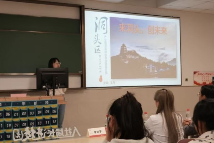 王丹老师从温州市洞头区概况、市区两级创业政策、区海创空间等方面进行了详细的介绍和讲解。她指出当前国家乃至地方积极鼓励青年在校大学生创新创业,政策红利不断出台。鼓励广大仁济学子抓住机遇,勇于实践。