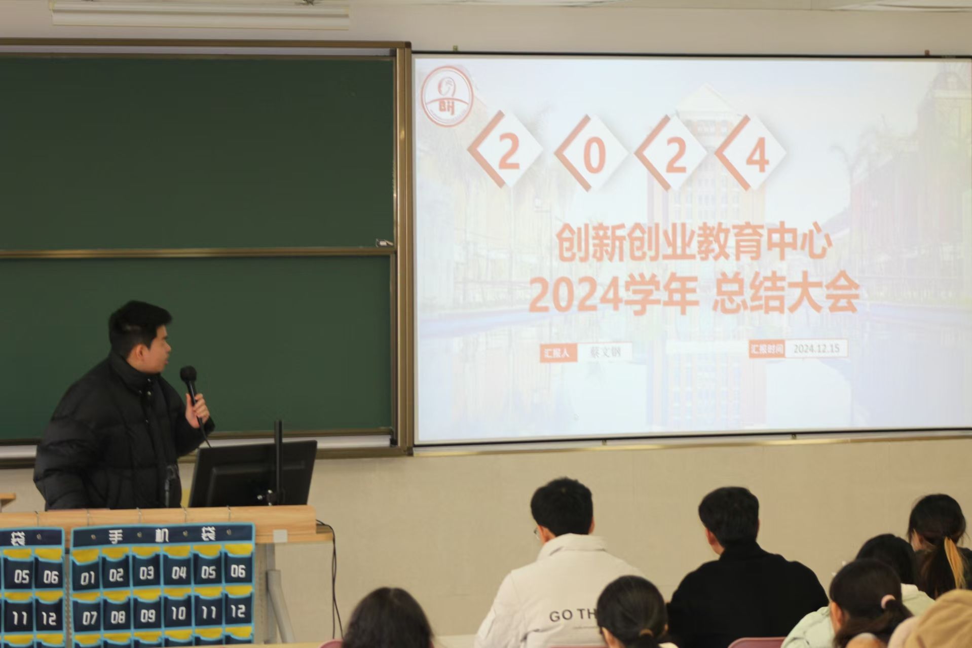 接下来大会第二项的内容是主席发言。主席邱祥龙对2024年度创新创业教育学部工作进行评价及总结,希望各位干部干事珍惜现下资源,积极培养自己的创业创新思维,提高个人能力及修养,取得更多进步。