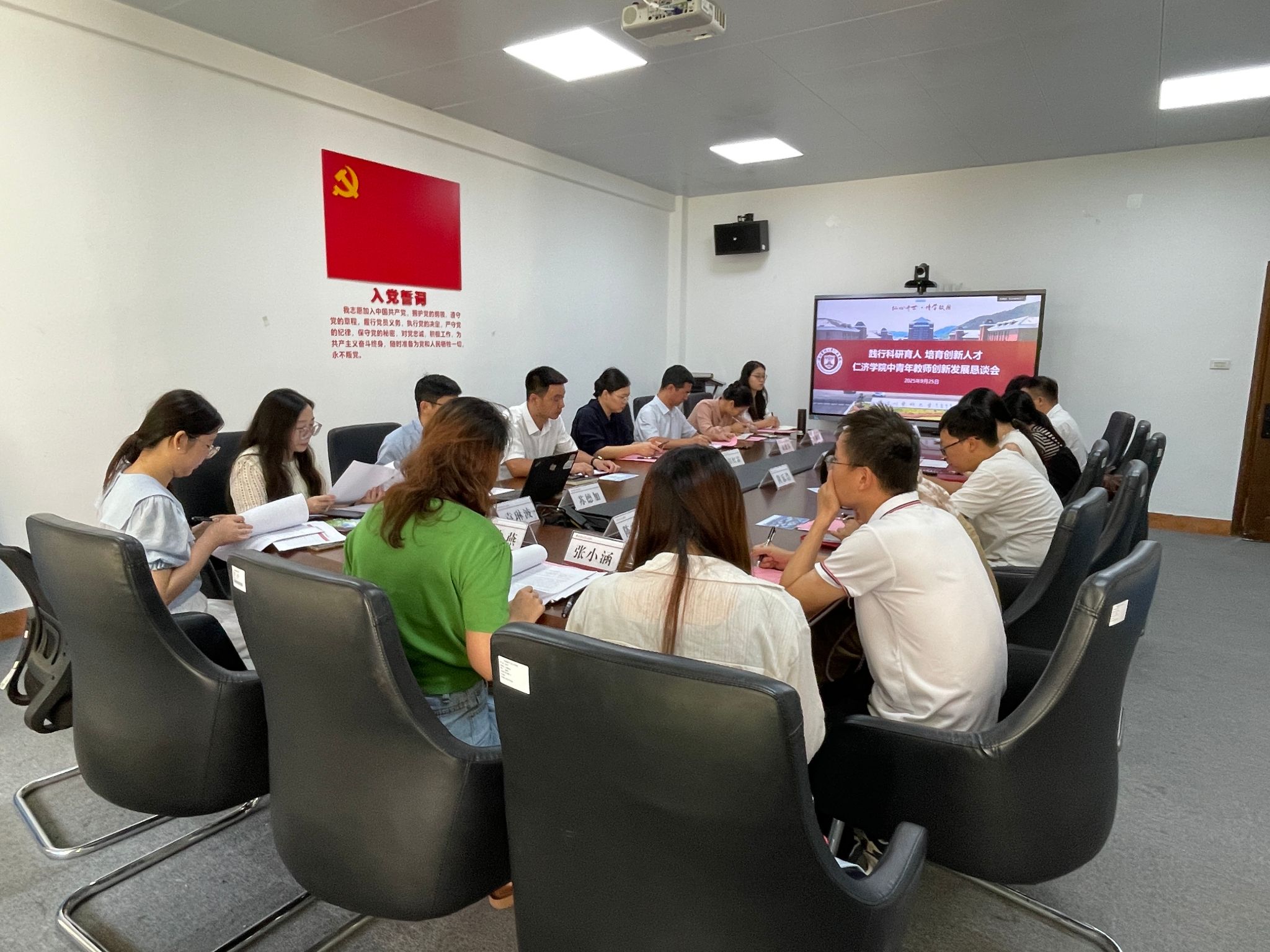 在座谈交流阶段,与会中青年教师踊跃发言,围绕如何优化科研环境、激发学生创新潜能、加强跨学科协作、完善激励机制等议题展开了热烈讨论,提出了诸多建设性意见。现场气氛活跃,思维碰撞不断,充分体现了学院中青年教师投身育人事业的责任感与使命感。