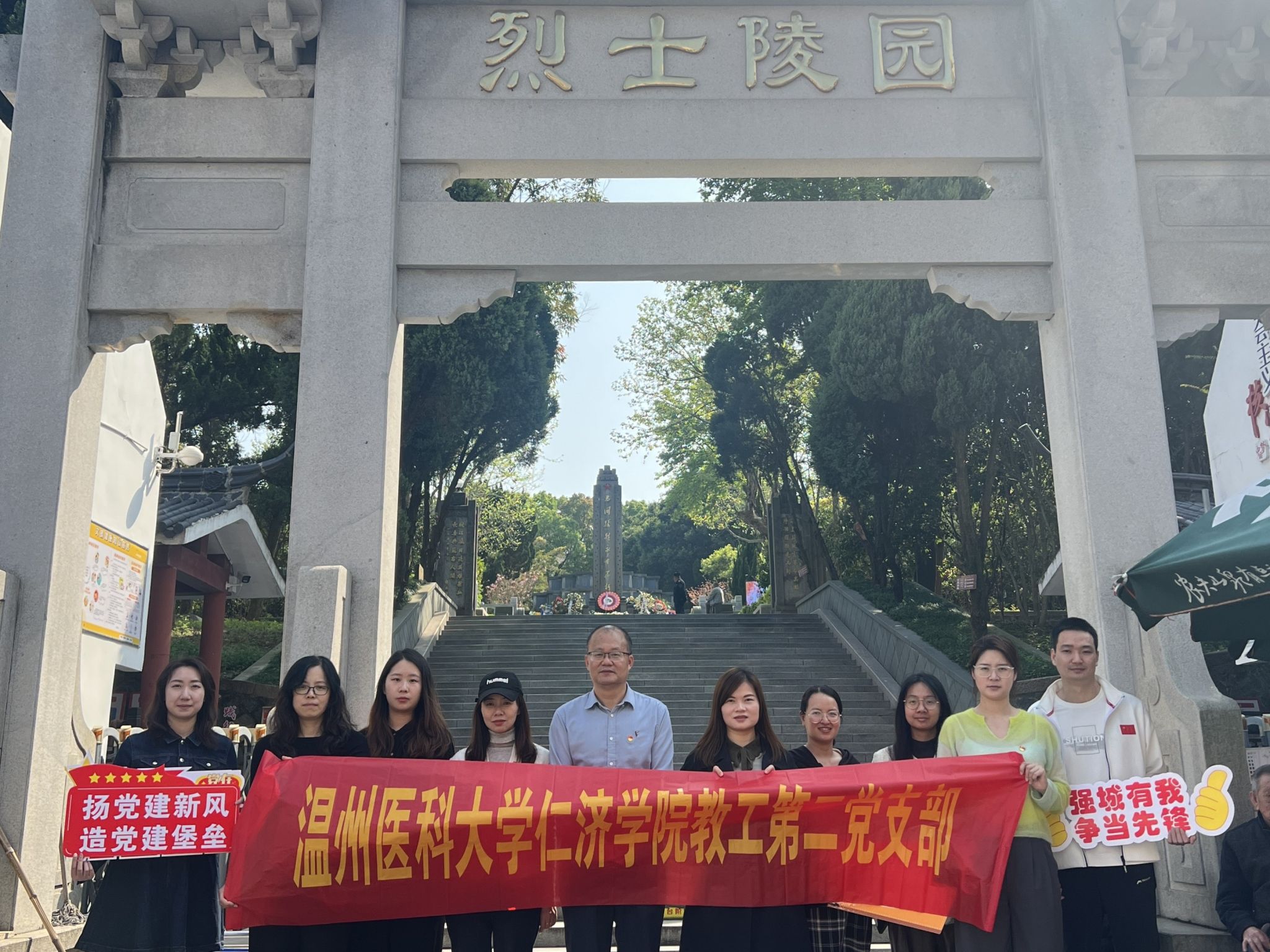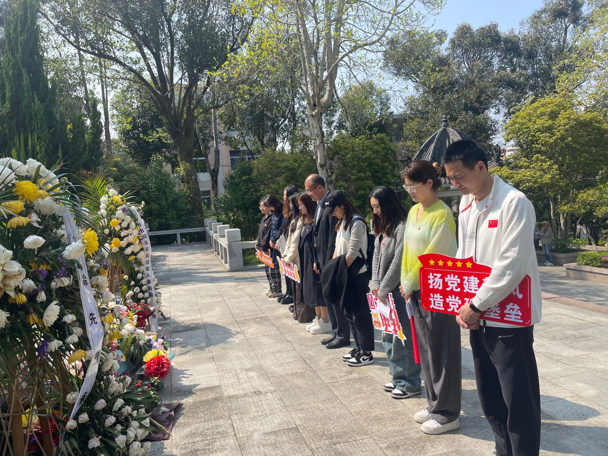 烈士陵园祭拜广场上,支部各位同志整齐列队,脱帽默哀,表达对长眠于陵园的140多名烈士的深切缅怀和崇高敬意。学院纪委书记林体排同志代表支部敬献花篮。