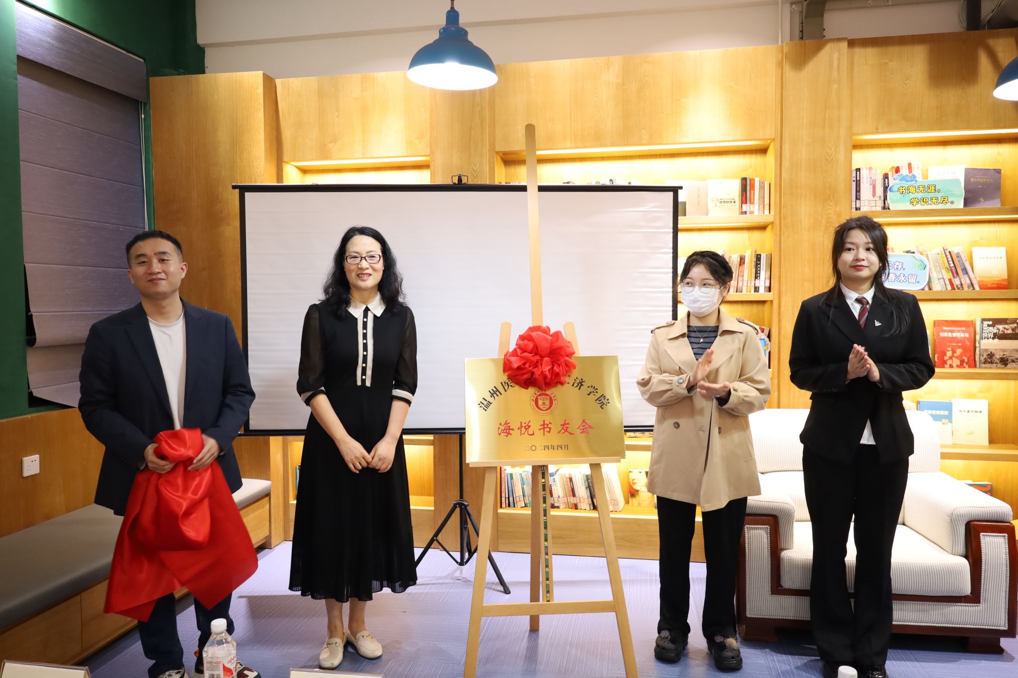 随后,在热烈的掌声中,施立松老师与学院师生共同为“海悦书友会”揭牌。这个隶属于学院仁文宣讲社的组织,立足洞头,致力于通过定期的读书会和作家讲座,激发同学们对阅读的热爱,帮助他们更全面地认识阅读的价值,促进个人成长和学术发展。教师代表向施老师颁发了“海悦书友会”顾问证书,以表达对她的敬意和感谢。
