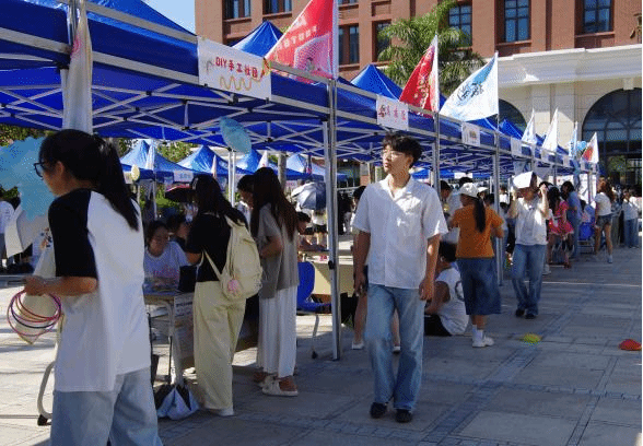 招新现场化身为一座联结传统与现代、兴趣与价值的多元展台。动漫社的创意展演与汉服社的典雅气韵彼此呼应,街舞社的跃动节奏与乐器社的悠扬旋律交织共鸣,急救社的情景模拟与海陶社的非遗体验同步展开。在团区委及区文广旅体局联合打造的特色展区里,贝雕的细腻纹理无声地诉说着匠心底蕴,海陶的拙朴形态静静地散发着传统魅力,成了现场最具人气的“文化磁场”,引得往来学子纷纷驻足,沉浸于地方非遗的独特气韵之中。整场活动不仅是对兴趣爱好的生动呈现,更是一场地方文化的深度展示与价值传递。青年学子在参与中感知传统,在体验中连接地方文化,展现出从个人热爱到社会责任的美好嬗变。